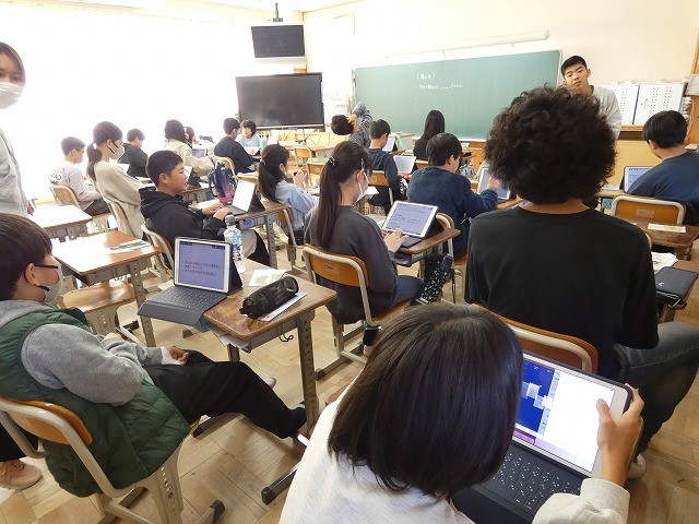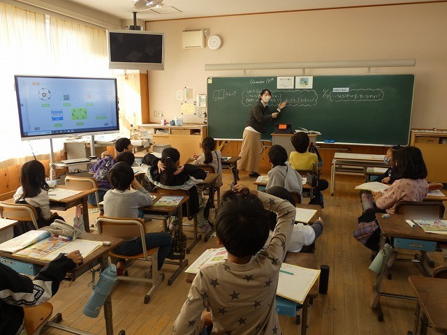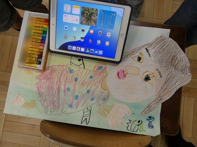 その後、教室では、生活科で作った秋のおもちゃで一緒に遊んだり、タブレットで一緒に遊んだりしました。