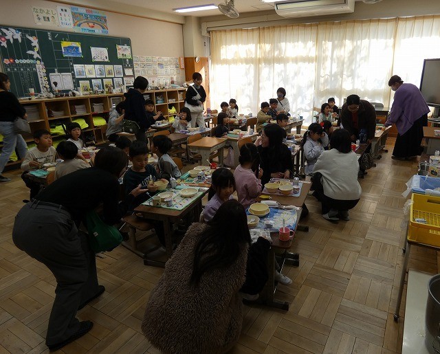 今日は、PTA保健体育部主催の「給食試食会」を行いました。