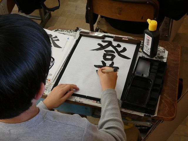 漢字とひらがなの大きさに気を付けて、「登る」という字を書いていました。