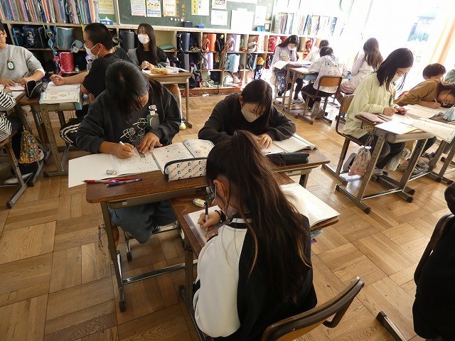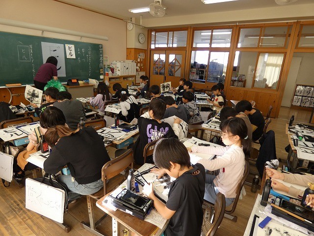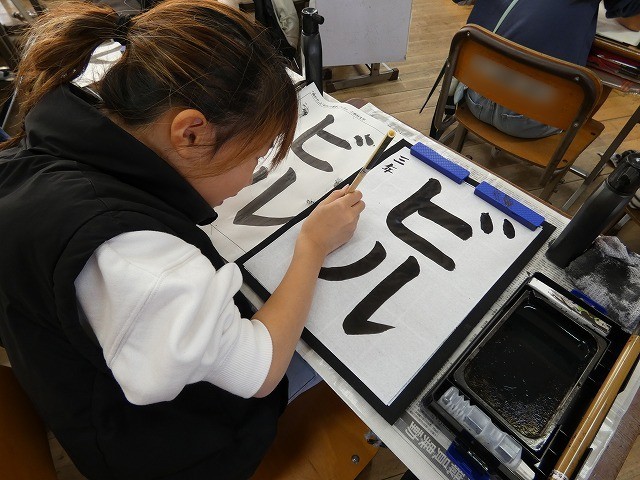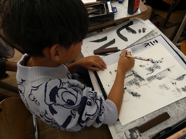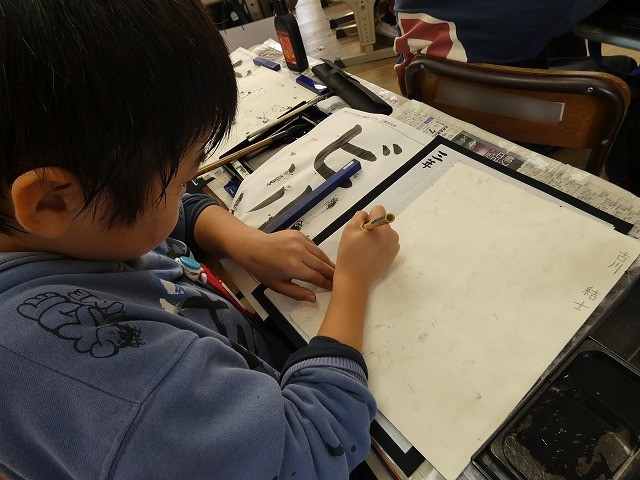 「曲がり」と「折れ」の筆使いに気を付けて書くことが、今回のめあてです。
