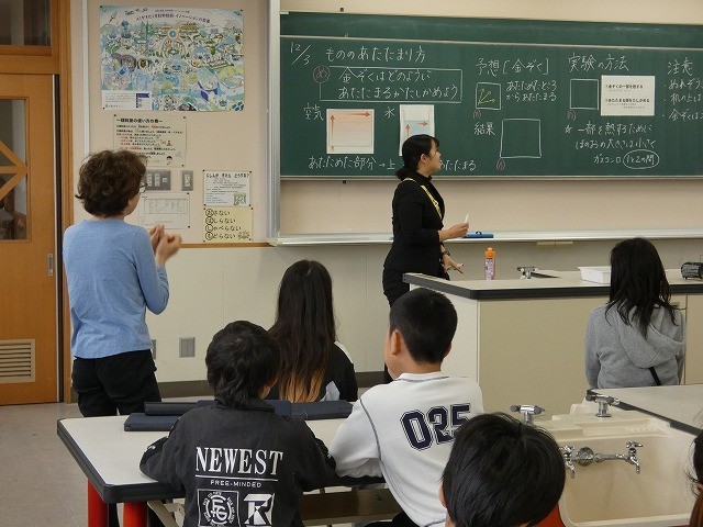 4年生の理科「もののあたたまり方」の研究授業の様子です。
