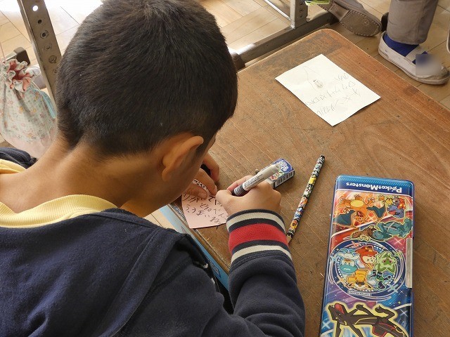 「何書いているの?」と聞くと、友達に渡す内容とのこと。