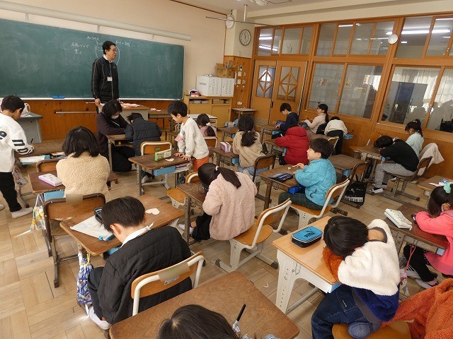 小中連携の一環として、東部中の校長先生と教務主任の先生が、その様子を参観しました。