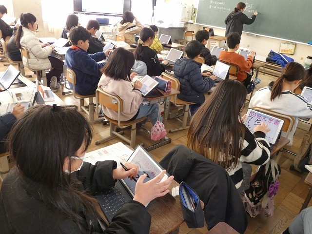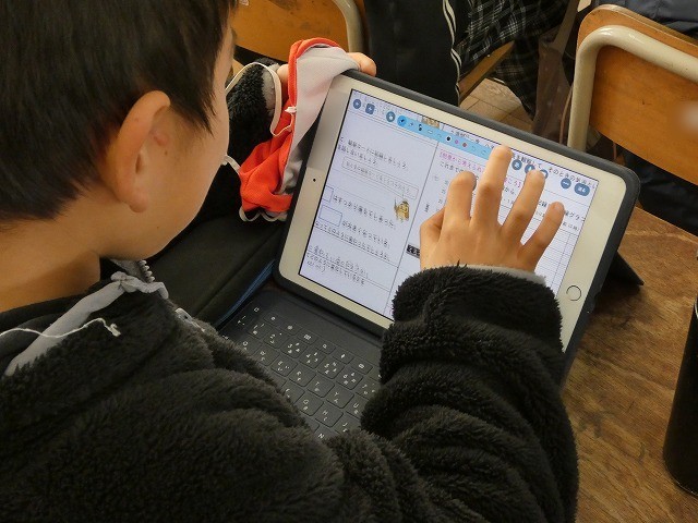 タブレット端末を使って所定のフォーマットに文章を書いていきますが、内容のアイデア出しや文章の校正に生成AIを使っている子もいます。