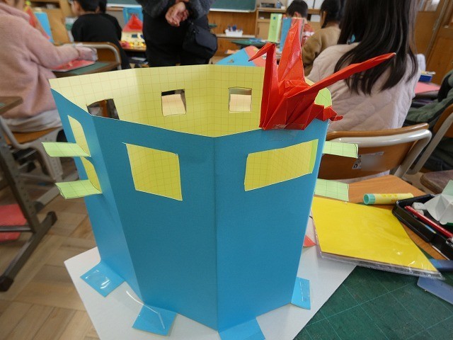 ところどころに窓があり、その窓には薄色紙で飾りを付けていました。
