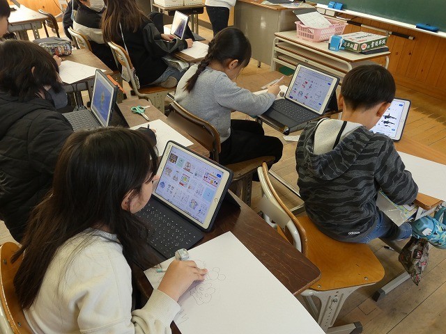 先生に質問したり、友達と相談したり、あるいは発展問題に取り組んだりするなど、子どもたちは主体的に学習に取り組んでいました。