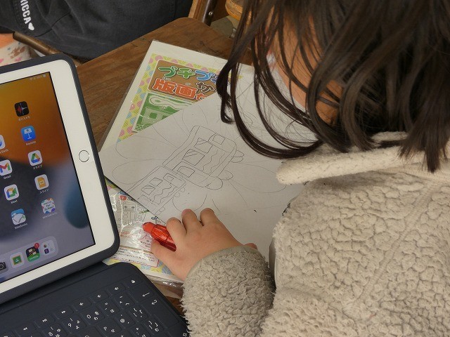 現在、3年生の図工では、紙版画に取り組んでいます。