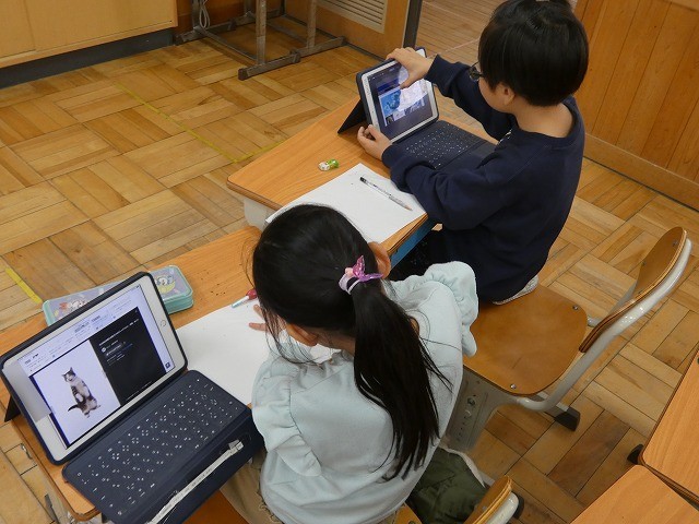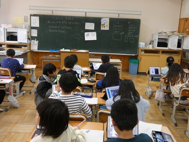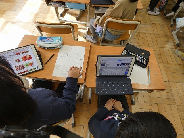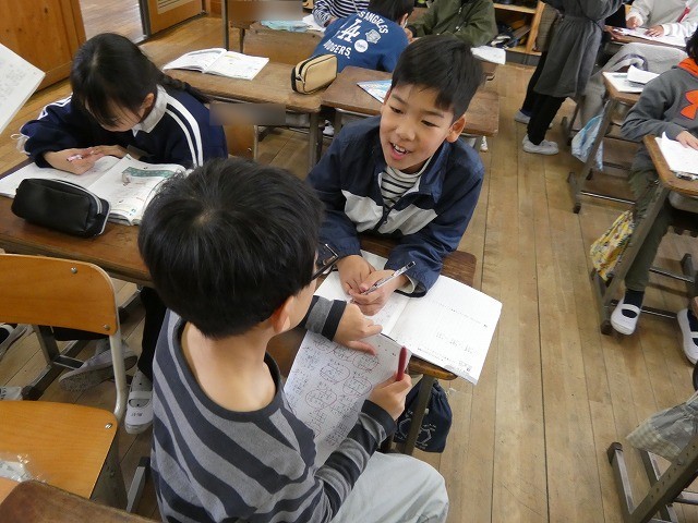 自分のペースで取り組みつつ、友達と協働して学び合っています。