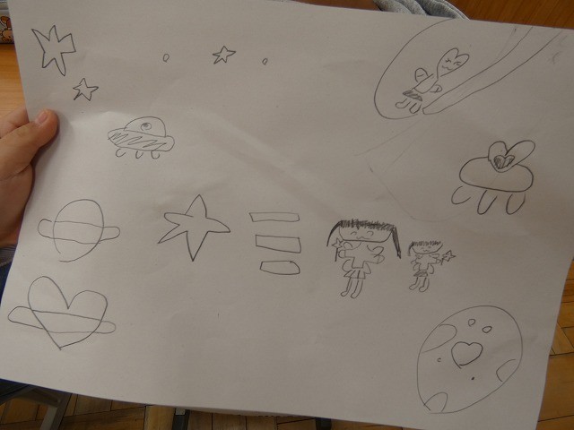 今日は、自分で考えたお話をグループ内で発表し、感想を言い合っていました。