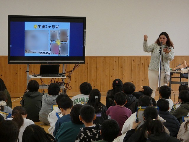 今日は5年生が、「命の授業」の一環として外部講師の先生のお話を聞きました。