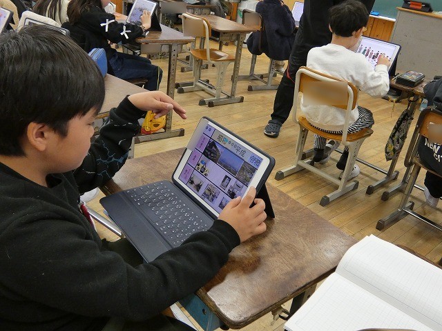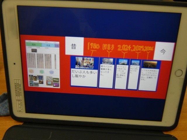 知多市の歴史と文化について、タブレットを使ってまとめていました。