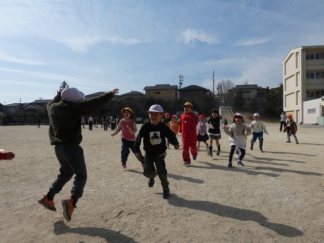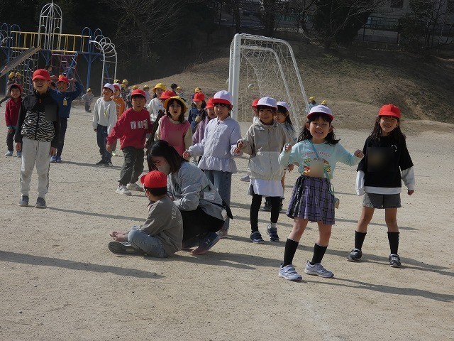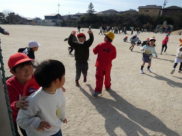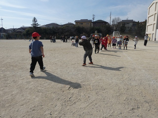 風が強く少し肌寒さを感じますが、子どもたちは熱中しています。