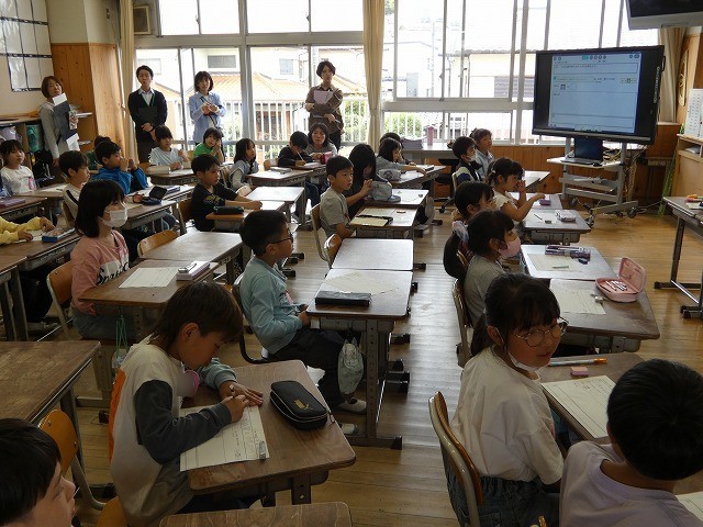 今日の5時間目に、現職教育主任が研究授業を行い、本校の先生たちが参観しました。