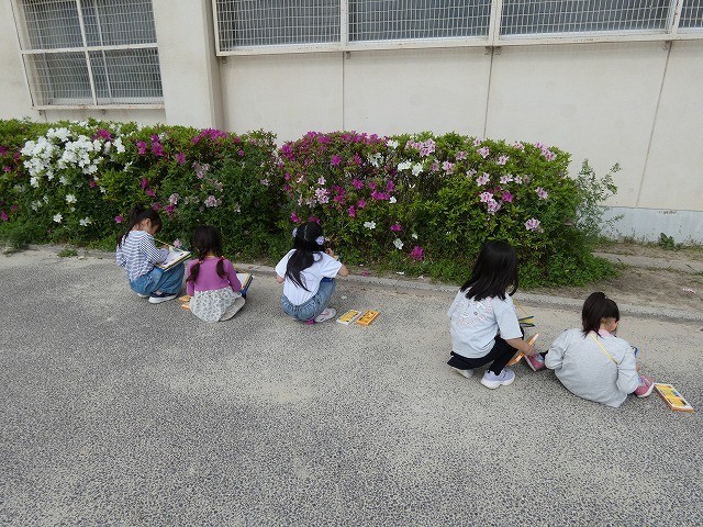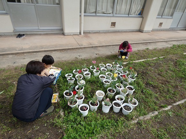 その中から好きな花を選んで、色や形をよく観察して、上手に描いていました。