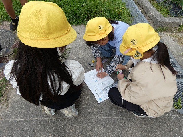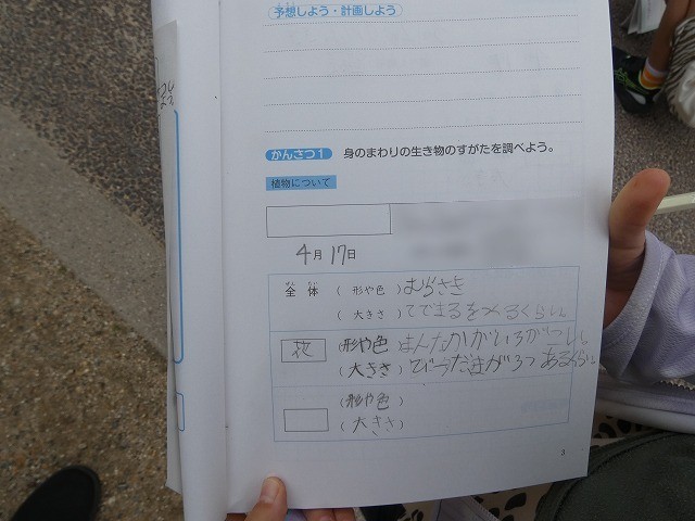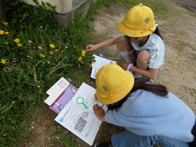 観察にはルーペを使い、理科ノートに調べたことをまとめていました。