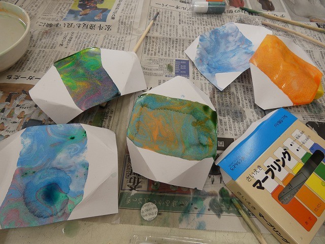 マーブリング、スパッタリングなどの塗り方を楽しみながら描いていました。