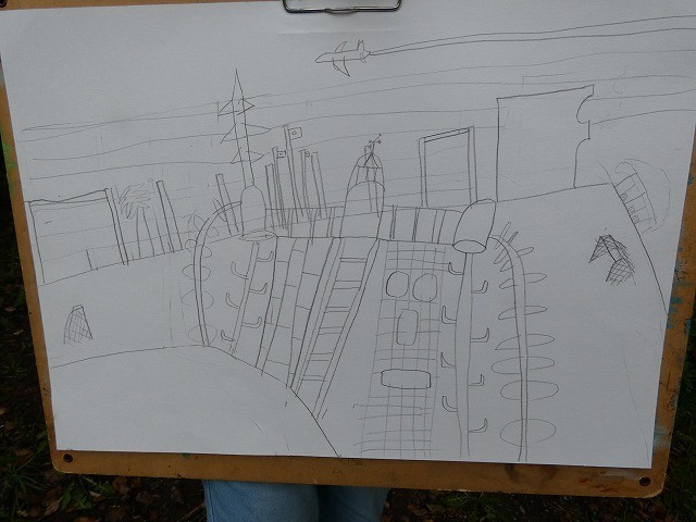 自分が実際にかいてみたい場所に行って、スケッチをしていました。
