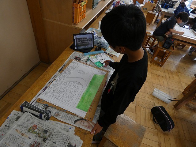 いろいろな角度から見た様子、一番かきたいものの様子、周りの様子など、同じ場所でかいていてもみんなちがっています。