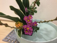 今週もお花ボランティアさんにお花を生けていただきました。万年青(おもと)、赤芽柳...