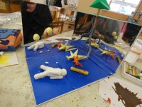 5年生の図工の授業の様子です。ちょっと変わった立体模型を作成しています。合わせ鏡...