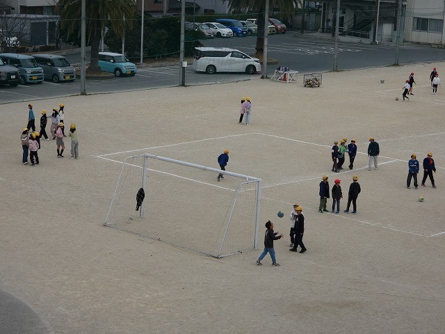 今日は、4年生が学級レクとしてドッジボールをしていました。少し曇っていましたが、...