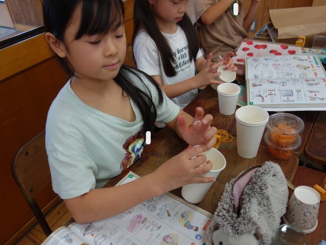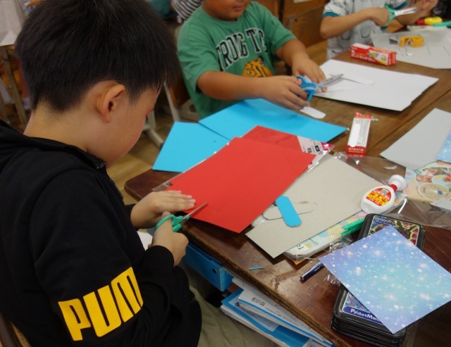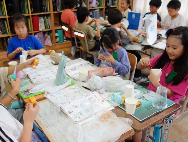 グループで話し合って、すてきなおもちゃを考えて作ります