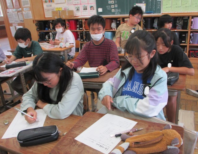 一枚の板を使い、切り方や組む方を考えて作品を作ります。
