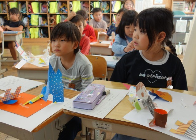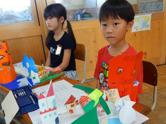 できあがった さくひんを みんなで かんしょうし、 ふりかえりを しました