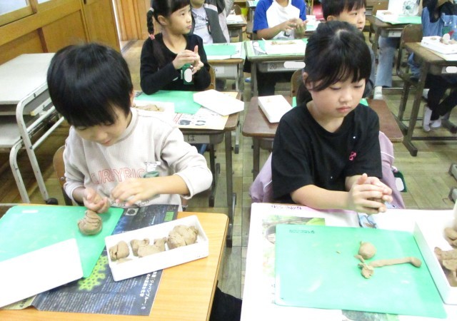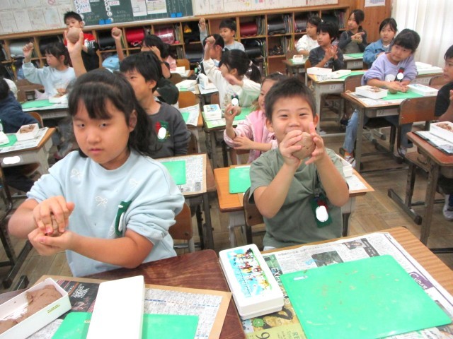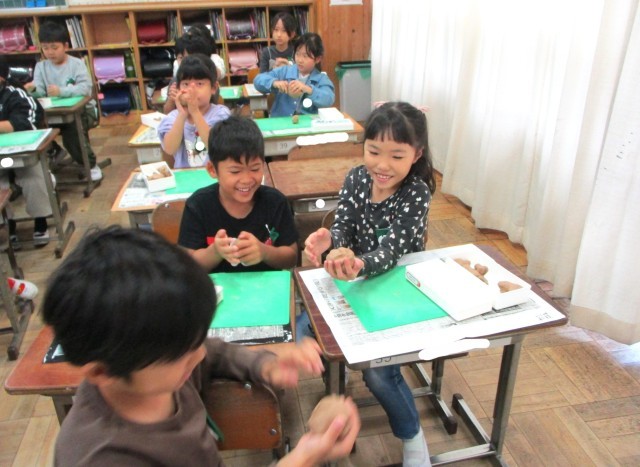 ねんどをにぎにぎしていきます。