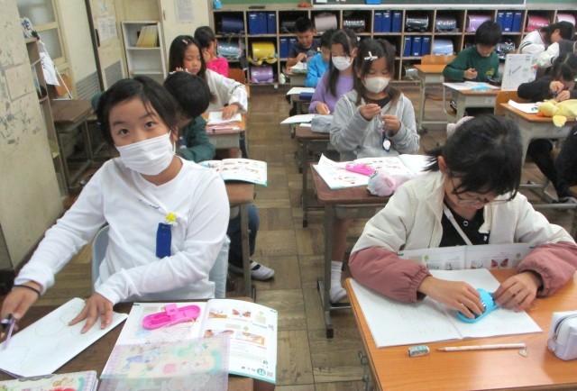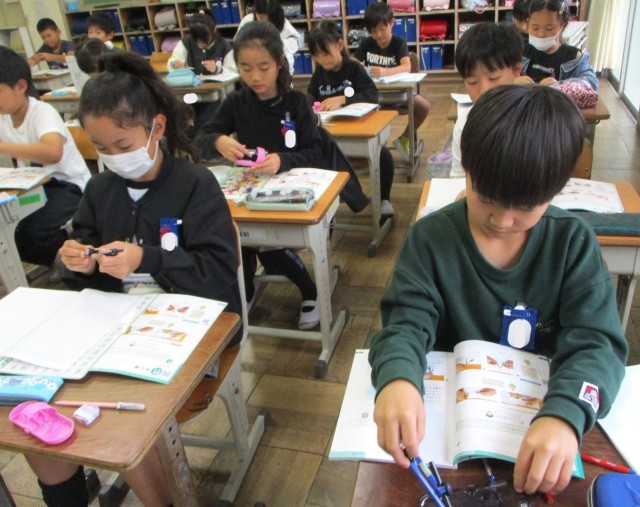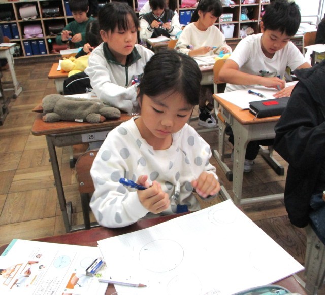 いろいろなものを使ってまるい形をかくことができるなか、コンパスを使ってかきました。