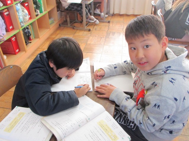 ひっ算のかけ算やわり算、大きな数の問題などなど、一人で解いたり仲間と解き方を確かめ合って解いたりと、がんばっています。