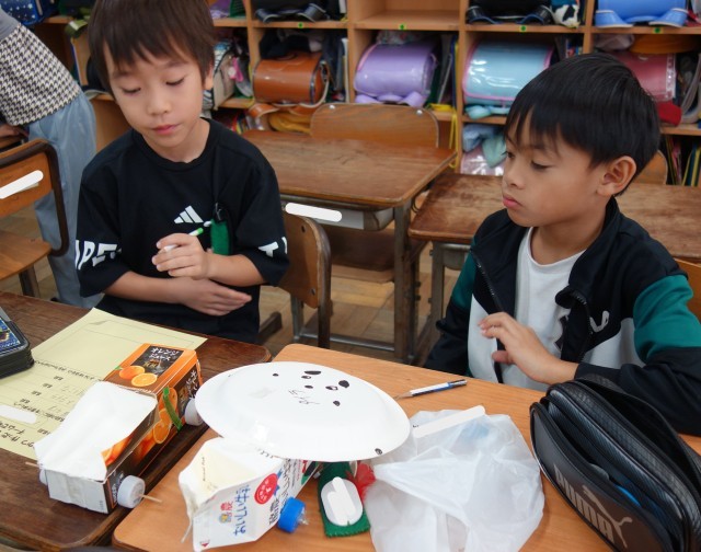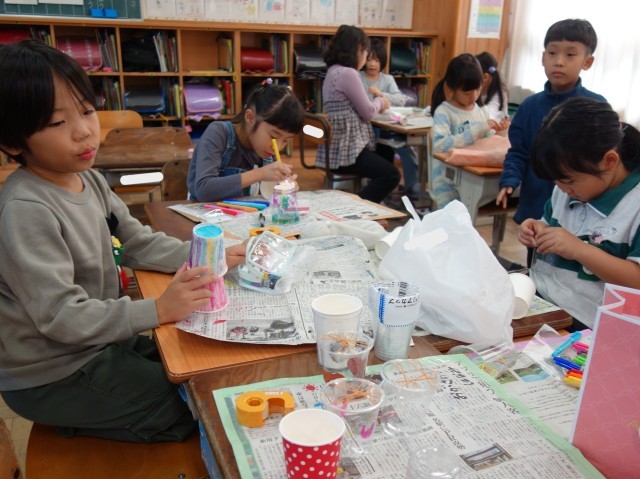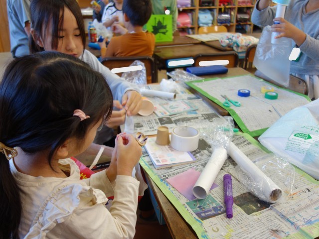 グループで協力して進めていたおもちゃづくり