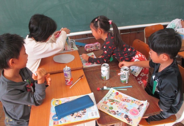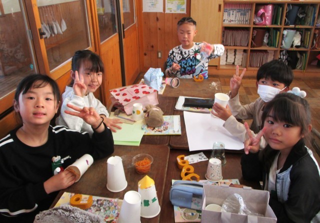 漢字の宿題を出し終わったら、図工のおもちゃづくりです。