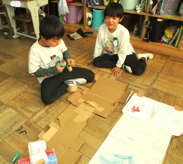 なかまと相談しながら楽しく工作しています。