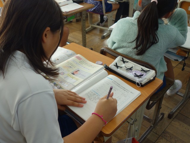 ノートに自分の言葉でまとめたあと、発表し合っています