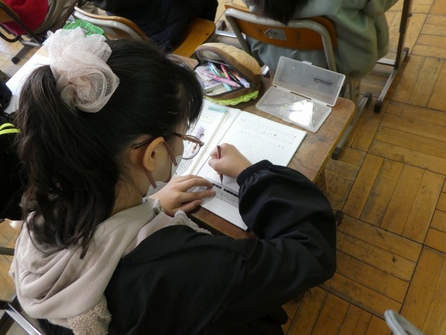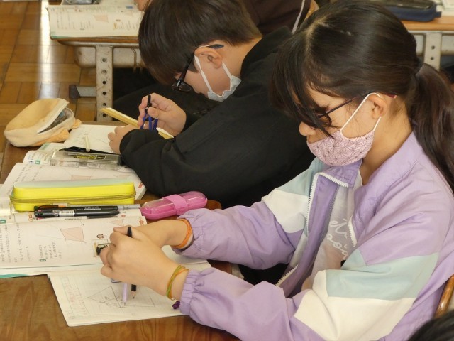 定規やコンパスを使って、分かっている情報をヒントに作図しています。