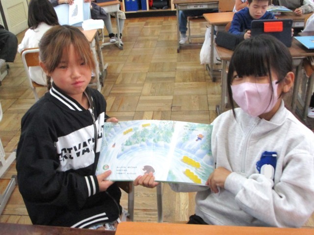 おすすめの本を一さつを決めて、お話がしっかり伝わるように、様子に合わせて声の大きさを変えたり考えてもらうところは話をとめて問いかけたりするなど、読み方を工夫しながら練習をしました。
