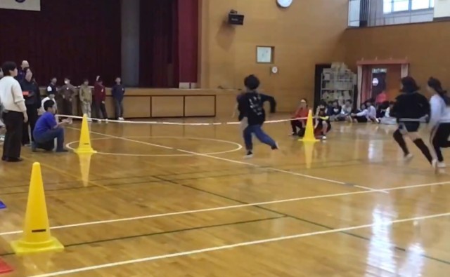 図書委員会は、運動会に向けてゴールテープを持つ練習をしていました。