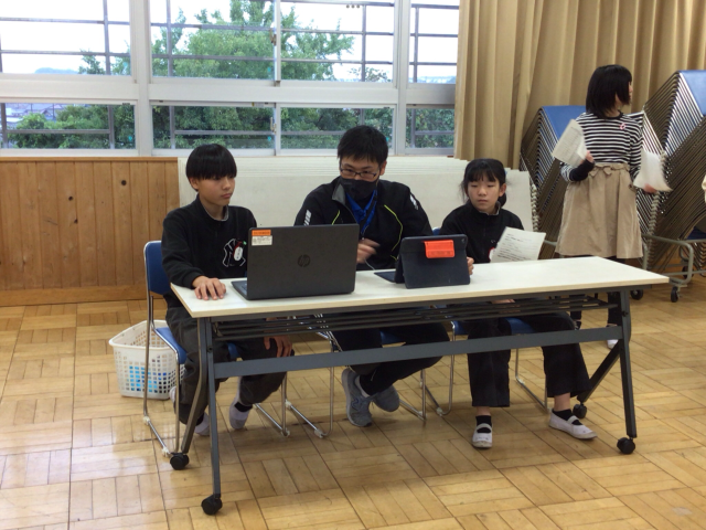 明日の運動会に向けて、機械の使い方や原稿を覚える練習をしていました。