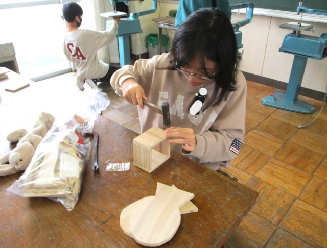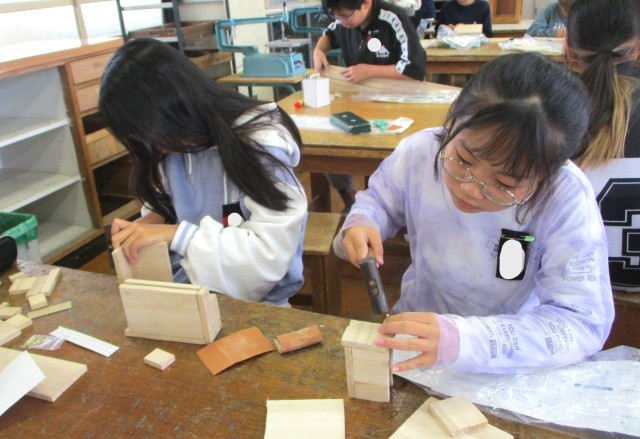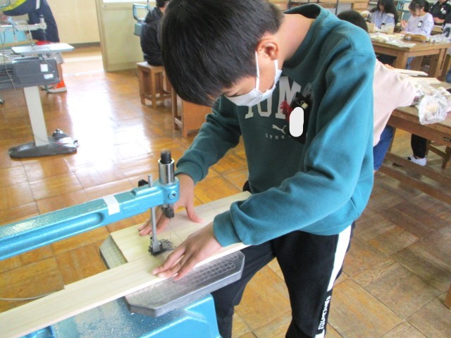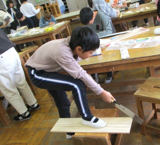 のこぎりや電動のこぎりを使って、丁寧にパーツを切り出しています。