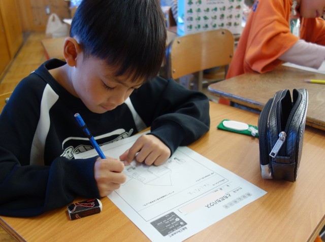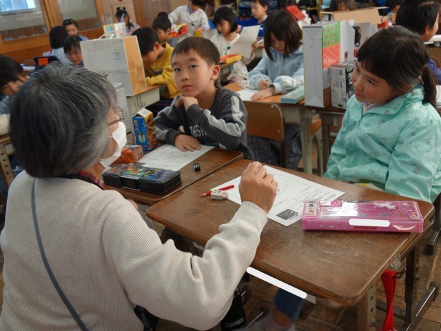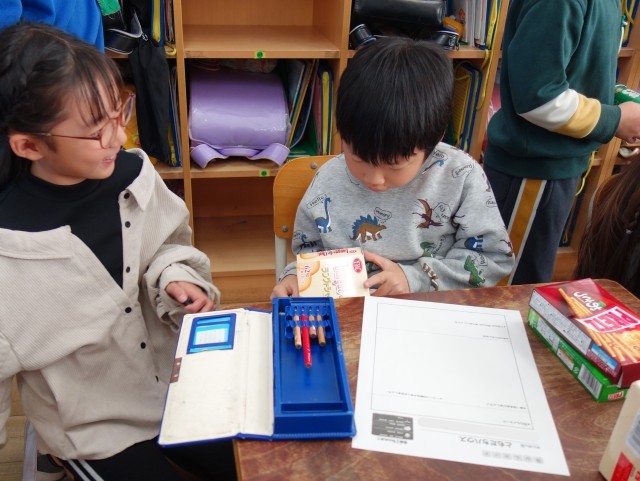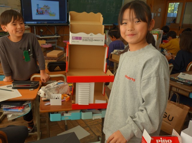 持ってきた厚紙の箱を重ねて構想を練る人もいますね