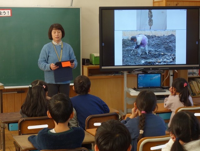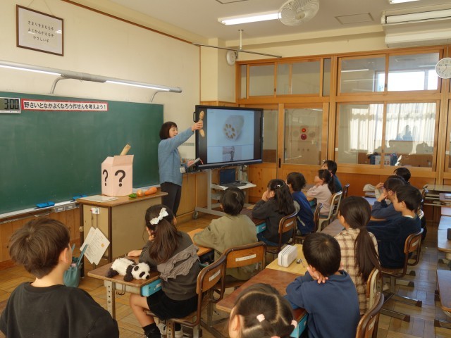いつも給食センターで美味しい給食をつくってくださっている栄養教諭さんの授業です