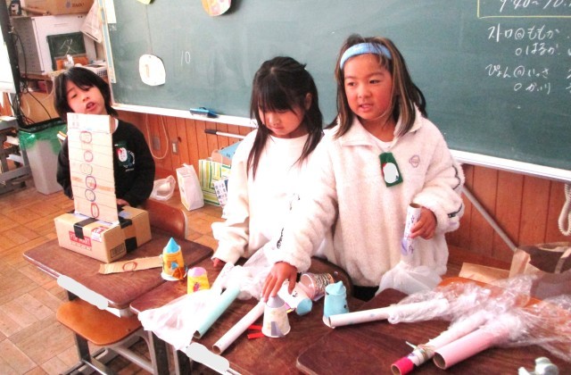 作ったおもちゃでお客さんに遊んでもらうお店屋さんをひらきました。