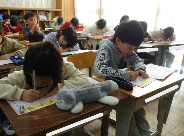 国語の学習のはじまりに、漢字の練習をします