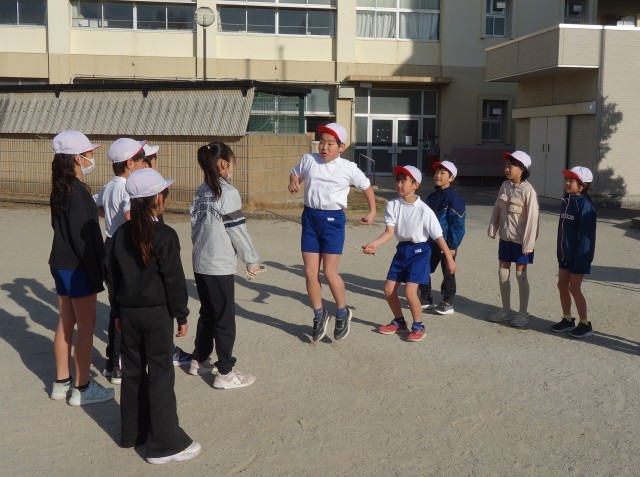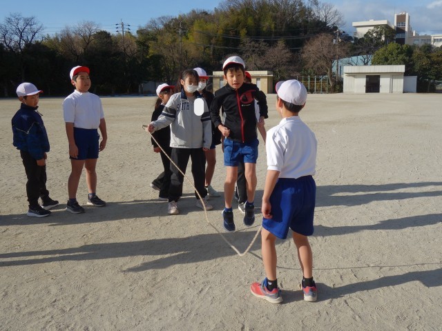 長縄跳びの練習をしています