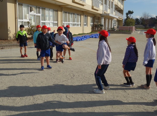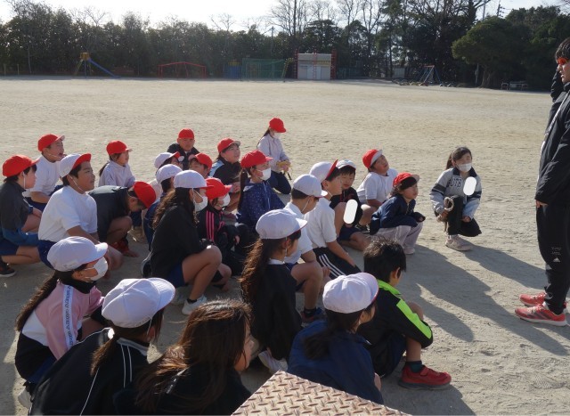 2グループに分かれて練習した後、全員で時間をはかって記録に挑戦します