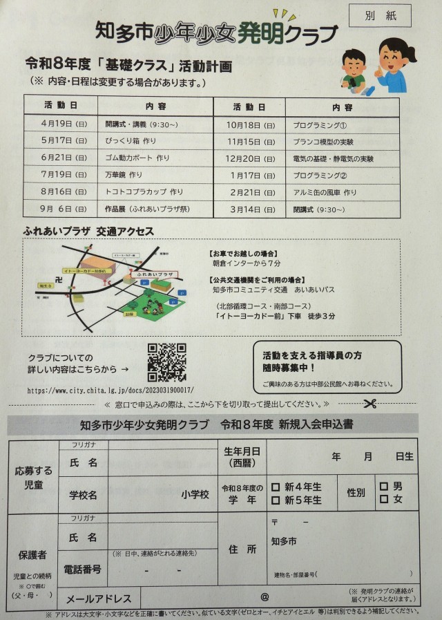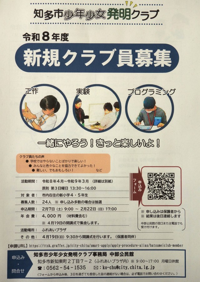 知多市少年少女発明クラブ新規クラブ員募集