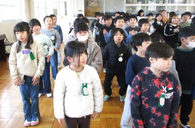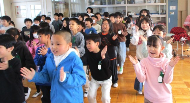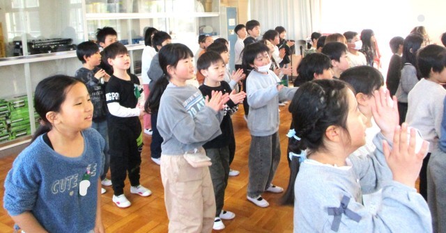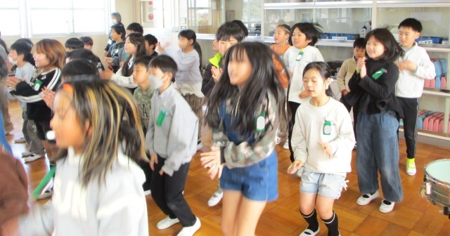 リズムに合わせて体を動かしたり手拍子を入れたりしながら楽しく歌いました。