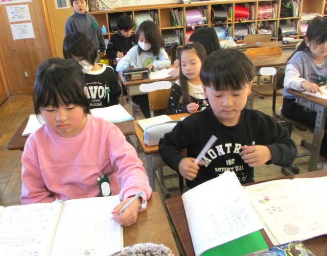 数とたし算・ひき算、かけ算の復習問題を解きました。