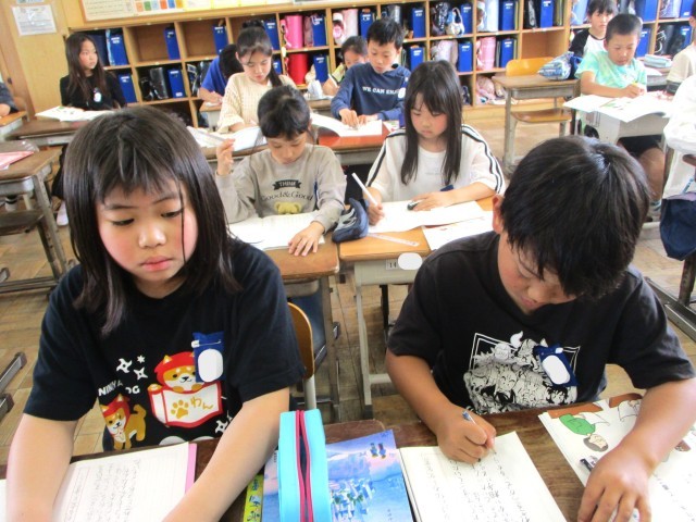 好きな物や身近な物の中から一つ選び、それがどんなことを見たり、聞いたり、感じたりしているか、なりきって、文章に書きます。